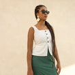 O Colete Aurora é uma peça de alfaiataria com essência atemporal. Criado com linho, viscose e poliéster reaproveitados, ele carrega elegância e propósito em cada detalhe. Os botões de coco trazem um toque natural e refinado, alinhando-se à estética clássica-contemporânea da coleção Velare. Perfeito para composições versáteis — vai bem tanto com peças amplas quanto com cortes mais retos —, é ideal para quem busca sofisticação e consciência em um só look.