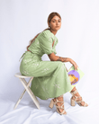 Parte da Collab entre Evolve e Romã, o Conjunto Colors traduz o minimalismo com leveza e personalidade. O top tem decote coração e mangas com volume sutil, enquanto a saia midi transpassada traz um caimento limpo e estruturado, valorizando a silhueta com discrição.