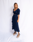 Fruto da colaboração entre Evolve e Romã, o Conjunto Colors é a união perfeita entre design marcante e responsabilidade ambiental. O top, com decote em formato de coração e mangas que acrescentam um toque de volume equilibrado, define uma silhueta feminina e ousada. Complementado pela saia transpassada em comprimento midi, que realça a cintura e reforça o corte preciso, o conjunto demonstra um estilo robusto e icônico.